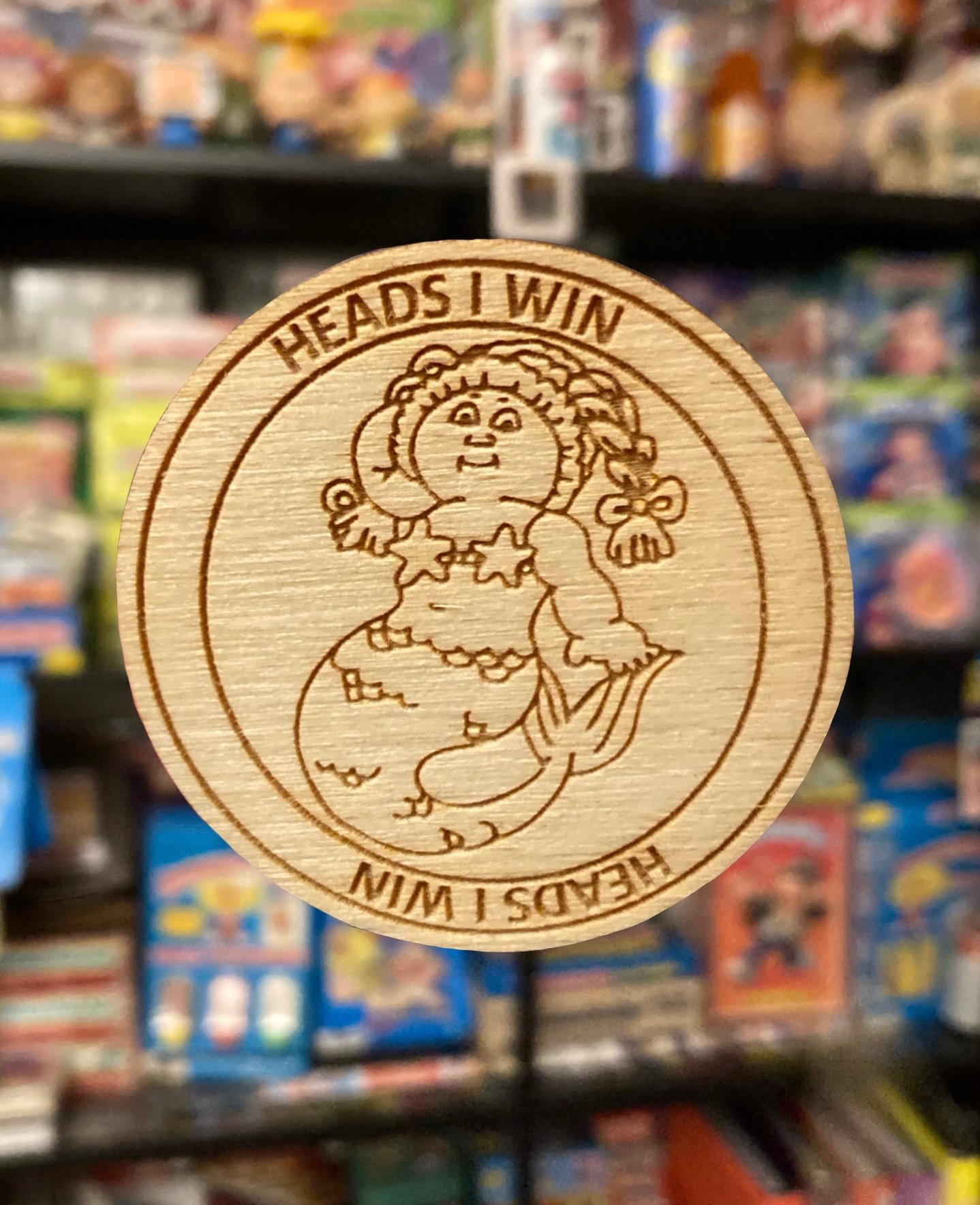 One laser cut wooden token (two sided). “Heads I win, Tails you lose”